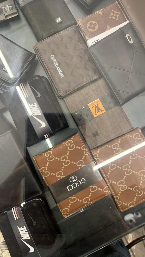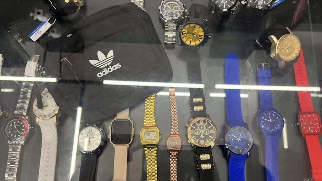 Durante a diligência, foram apreendidos camisetas, calças, casacos, tênis, carteiras, bonés, cintos e relógios.